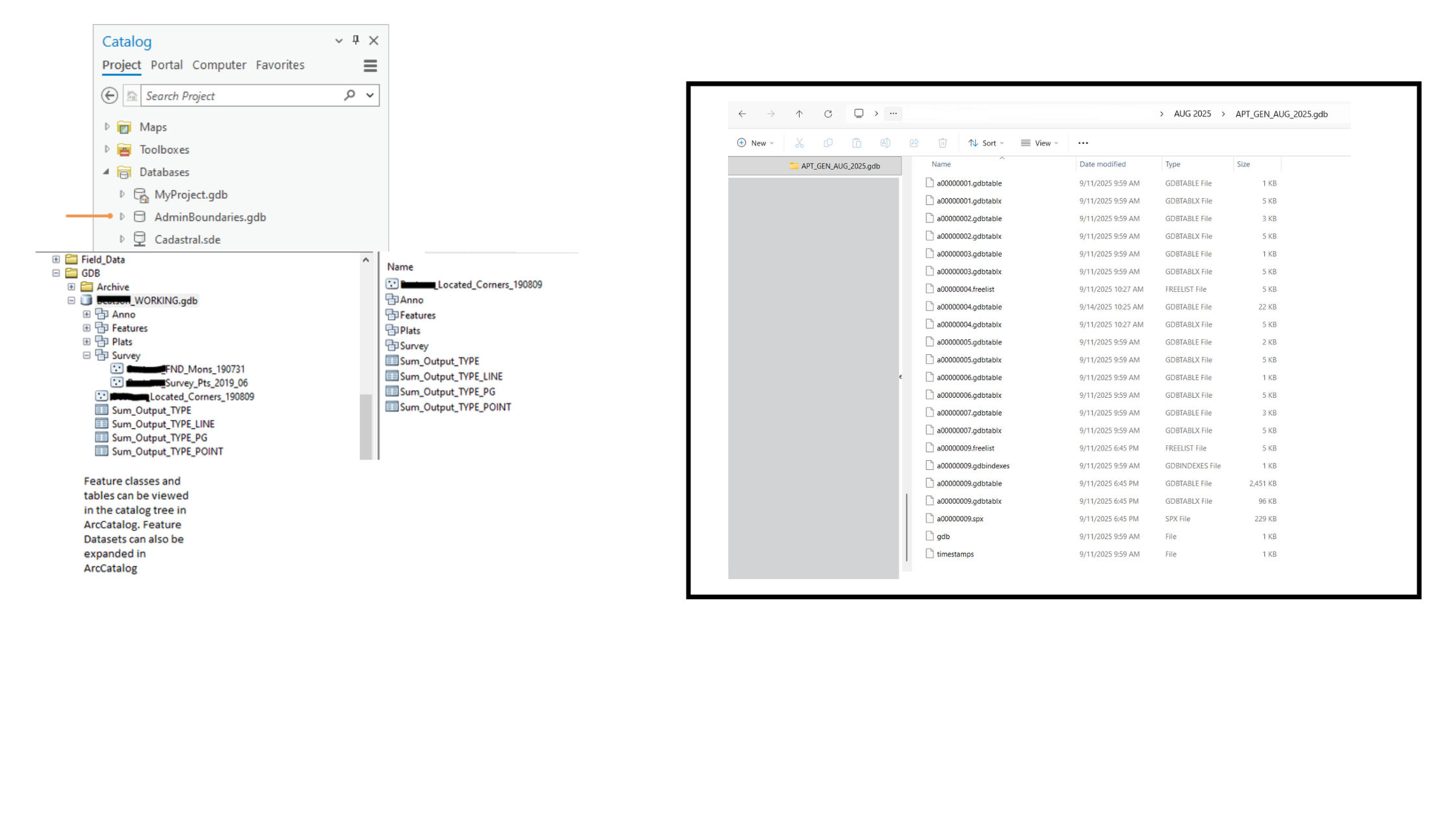 Jika Anda melihat data .gdb melalui Windows Explorer, Anda hanya akan melihat sebuah folder biasa yang berisi puluhan file biner dengan nama acak (seperti a00000001.gdbtable). Jangan pernah mengotak-atik isi folder ini secara manual! Menghapus satu file saja di sana bisa membuat seluruh database Anda rusak.